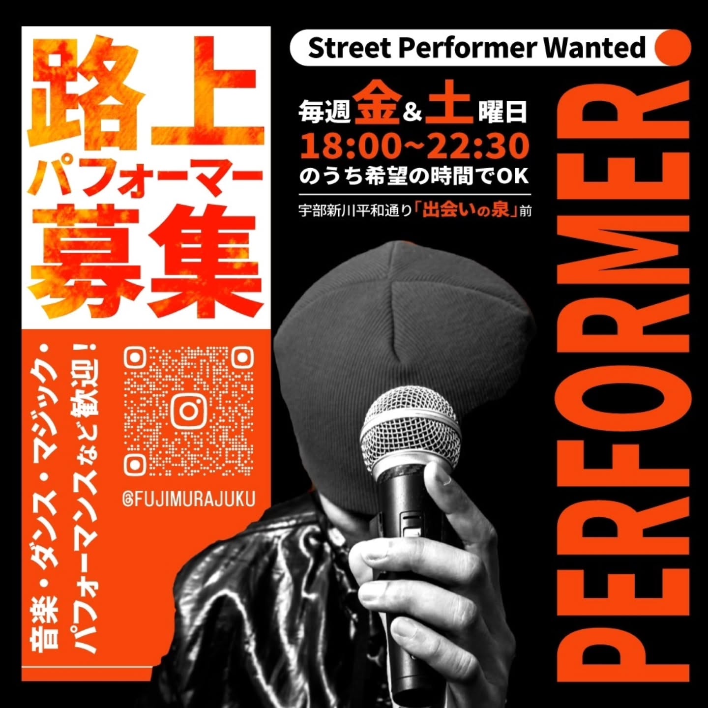 ジャンルは問いません。音楽を通じて街や人とつながりたい方、大歓迎です!